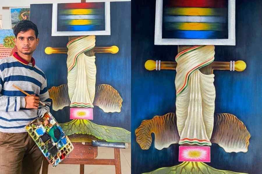 Chandil News: चांडिल प्रखंड के चैनपुर गांव के कलाकार सौरभ प्रामाणिक ने अपनी नवीनतम कृति “राष्ट्र माता” के साथ भारतीय कला जगत में एक नया अध्याय जोड़ा है. यह पेंटिंग न केवल अवनींद्रनाथ टैगोर की “भारत माता” की पारंपरिक मानवीकृत छवि से पूरी तरह अलग है, बल्कि यह भारत में “राष्ट्र माता” के अमूर्त रूप का पहला चित्रण होने का गौरव भी रखती है.