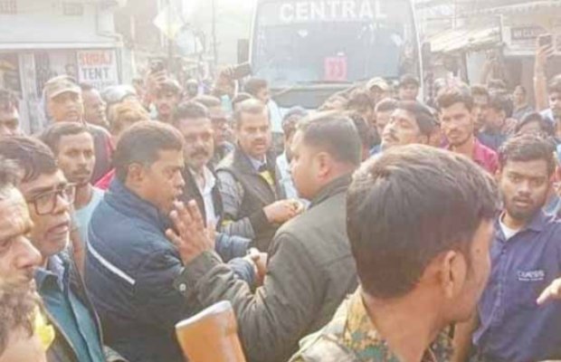 स्थानीय लोगों के अनुसार बाइक सवार नशे में था और तेज़ रफ़्तार में लापरवाही से बाइक चला रहा था। घटना के बाद बाइक चालक बस चालक और आसपास मौजूद लोगों से उलझने लगा, जिससे माहौल और तनावपूर्ण हो गया। विवाद को बढ़ता देख आस-पड़ोस के लोग भी जमा होने लगे और भीड़ बढ़ती गई। कुछ लोगों ने स्थिति शांत कराने की कोशिश की, लेकिन युवक लगातार हंगामा करता रहा।