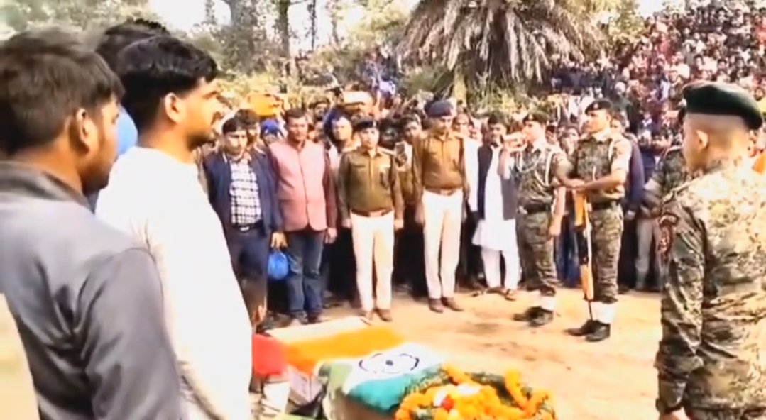 Jharkhand: कोडरमा जिला के मरकच्चो प्रखंड अंतर्गत देवीपुर गांव के 27 वर्षीय शहीद सीआरपीएफ जवान सुजीत सिंह का पार्थिव शरीर आज शुक्रवार की सुबह उनके गांव पहुंची। पूरा क्षेत्र में मातम पसर गया। लोगो के आंख में आंसू भर आये। शहीद सुजीत सिंह की अंतिम यात्रा में कई जनप्रतिनिधिगण, समाजसेवी, पुलिस, प्रशासन पदाधिकारी सहित हजारों लोगो ने भाग लिया। शहीद सुजीत सिंह को तिरंगे में लपेट कर राजकीय सम्मान के साथ उनका किया गया अंतिम संस्कार। चारों तरफ भारत माता की जय, शहीद सुजीत सिंह अमर रहे, वंदे मातरम गूंजते रहे। वहीं जो अंतिम यात्रा में भाग नहीं ले पाए वह सोशल मीडिया पर श्रद्धांजलि अर्पित कर रहे हैं।
