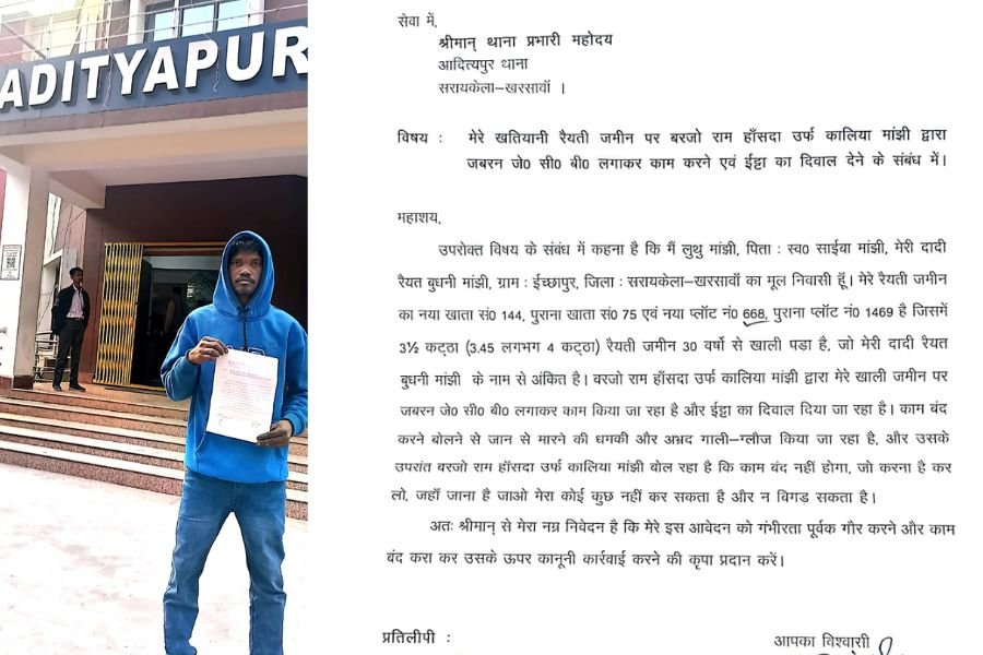 Adityapur News: आदित्यपुर थाना अंतर्गत मांझी टोला के रेन बसेरा के समीप खाली पड़े जमीन पर घेराबंदी को लेकर एक बड़ा मामला प्रकाश में आया है. लुथू माझी पिता साइवा माझी ने आरोप लगाया है कि रयती जमीन का नया खाता संख्या 144, पुराना खाता संख्या 75 एवं नया प्लॉट नंबर 668, पुराना प्लॉट नंबर 1469 है जिसमें 3.45 लगभग चार कट्ठा रयती जमीन 30 वर्षों से खाली पड़ा हुआ है जो मेरी दादी रैयत बुधनी मौजूद के नाम से अंकित है.