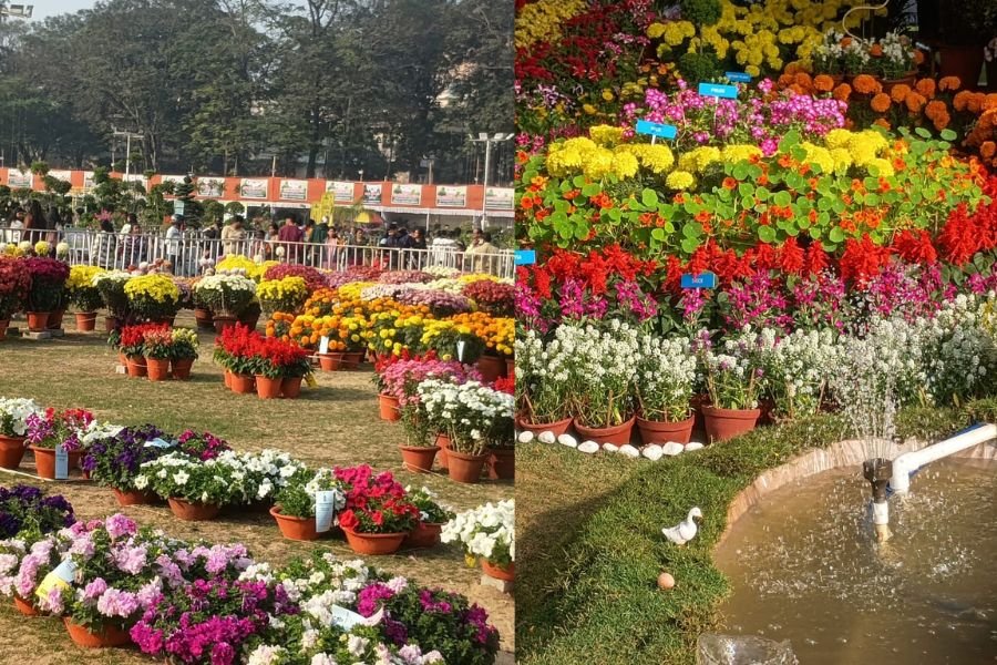 क्राइसेंथेमम फूलों की बहार ने शो को और भी रंगीन बना दिया है. पीले, सफेद, गुलाबी और नारंगी रंग के क्राइसेंथेमम बड़े गुच्छों में सजे हुए हैं. पीले फूल सूरज की तरह चमकते नजर आते हैं, जबकि सफेद फूल बर्फ जैसी आभा देते हैं. गुलाबी, बैंगनी और नारंगी रंगों के फूलों को परत दर परत सजाया गया है, जिससे पूरा मैदान रंगों की दुनिया में बदल गया है.