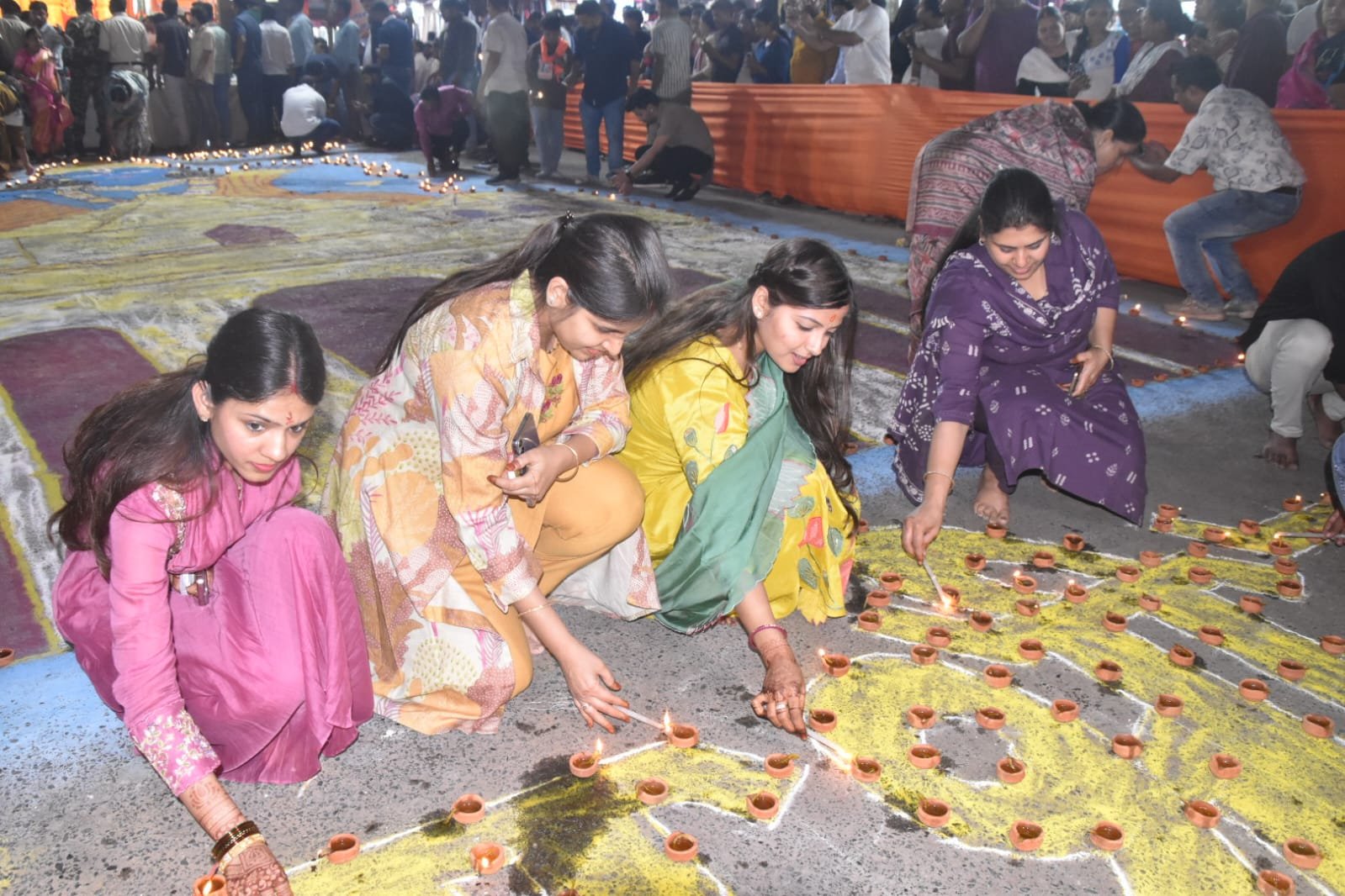 कार्यक्रम का मुख्य आकर्षण बनारस की तर्ज पर आयोजित महाआरती रही। अस्सी घाट के प्रसिद्ध आचार्य के नेतृत्व में पंडितों के समूह ने पूरे विधि-विधान के साथ प्रभु श्रीराम की आरती की। शाम करीब 7 बजे शंखध्वनि और घंटों की गूंज के बीच आरती शुरू हुई, जिसने पूरे माहौल को आध्यात्मिक ऊर्जा से भर दिया।